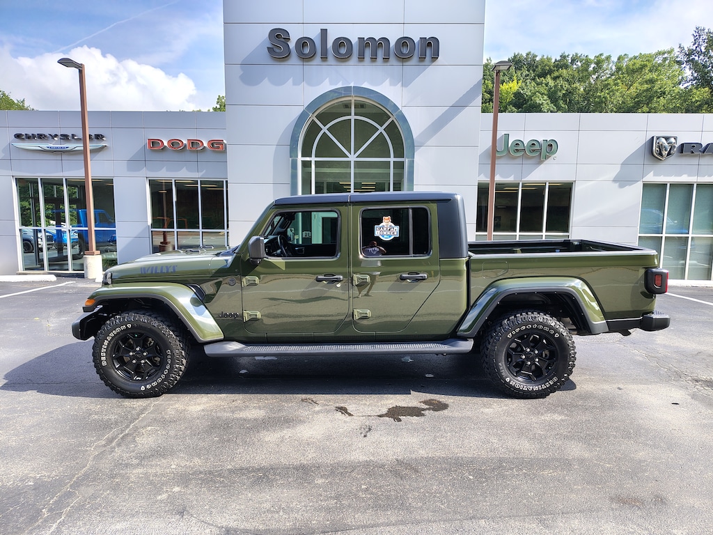 HARDTOP! THIS CERTIFIED 2022 JEEP GLADIATOR WILLYS 4X4 FEATURES A 3.6 V6, 24W PACKAGE, AUTO, FULLY POWER EQUIPPED AND MUCH MORE TOO LIST! DON'T MISS THIS DEAL! THIS CERTIFIED PREOWNED VEHICLE GOES THROUGH A 125 POINT SAFETY CHECK AND COMES WITH THE REMAINING 3 YEAR/36,000 FACTORY WARRANTY AND A 7 YEAR/100,000 POWERTRAIN WARRANTY! SPECIAL FINANCING IS AVAILABLE. NO CREDIT? NO PROBLEM, WE CAN HELP! WE ARE A CERTIFIED CHRYSLER JEEP DODGE RAM DEALER SO SHOP US WITH CONFIDENCE!! WE NEED YOUR TRADE, AND WE WILL GIVE YOU TOP DOLLAR FOR IT! SOLOMON CHRYSLER JEEP DODGE RAM, CARMICHAELS PA 724-966-2600. WWW.SOLOMONAUTO.COM