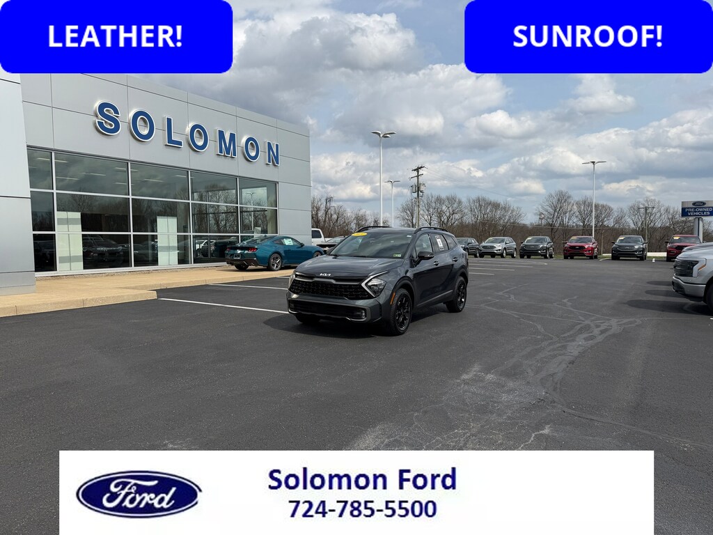 THIS 2023 KIA SPORTAGE X-PRO AWD FEATURES A 2.5 4CYL, AUTO, LEATHER, POWER SUNROOF/MONROOF, FULLY POWER EQUIPPED AND MUCH MORE TOO LIST! DON'T MISS THIS DEAL! THIS PREOWNED VEHICLE GOES THROUGH A SAFETY CHECK AND COMES WITH THE REMAINING 5YEAR/60,000 MILE FACTORY WARRANTY ! SPECIAL FINANCING IS AVAILABLE. NO CREDIT? NO PROBLEM! WE CAN HELP! WE ARE A CERTIFIED FORD DEALER, SO SHOP US WITH CONFIDENCE! WE NEED YOUR TRADE, AND WE WILL GIVE YOU TOP DOLLAR FOR IT! SOLOMON FORD, BROWNSVILLE, PA 724-785-5500. WWW.SOLOMONAUTO.COM